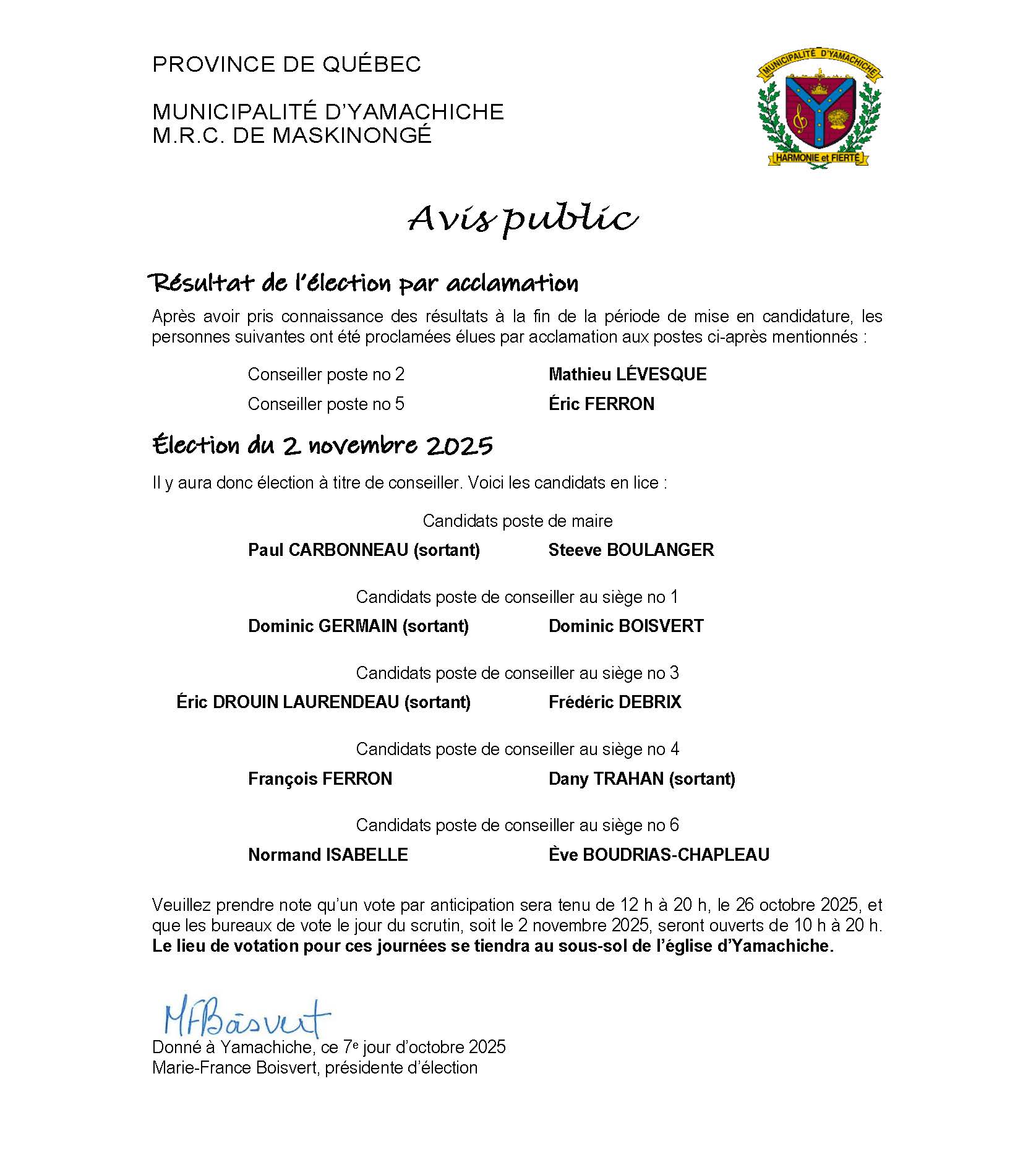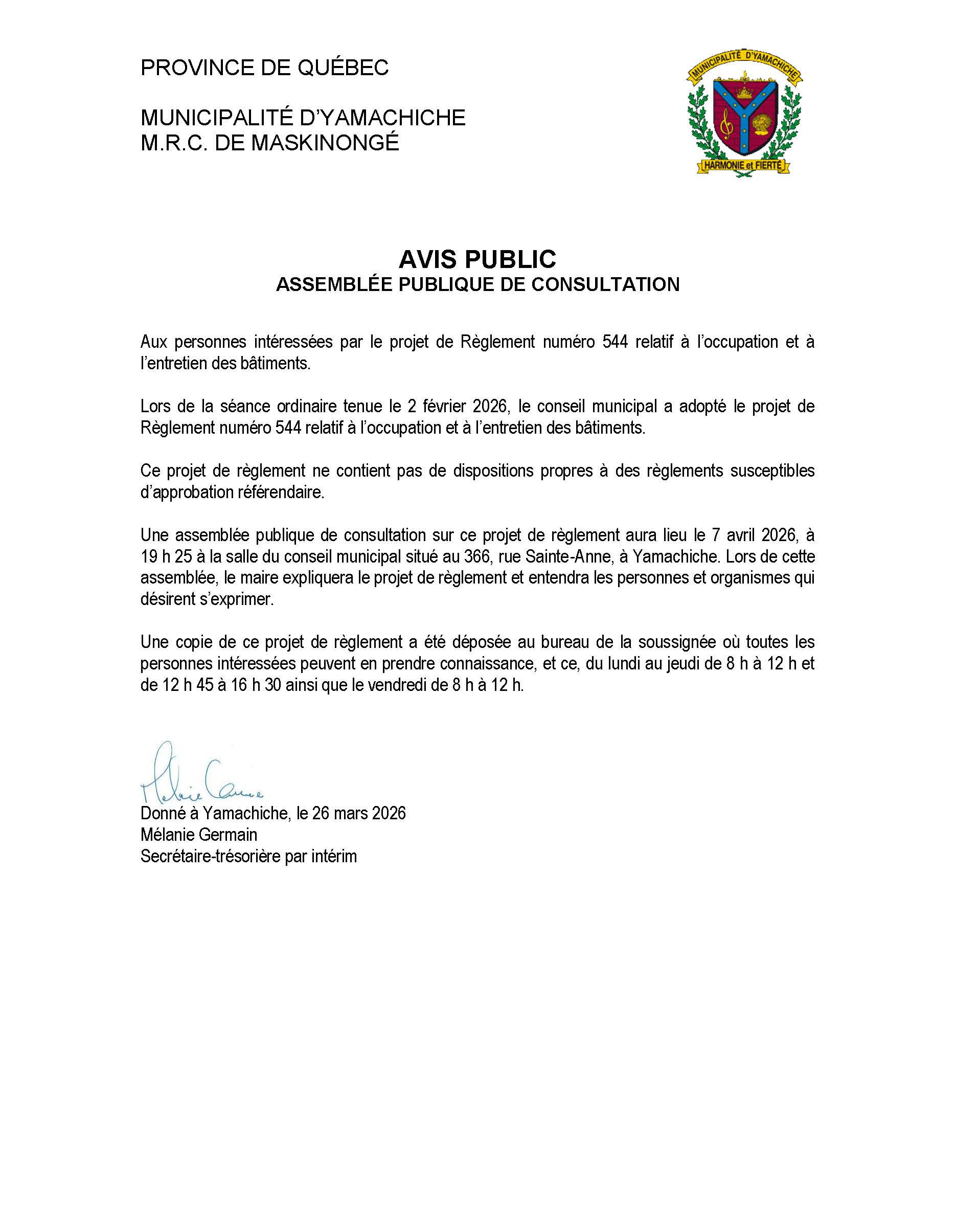 Consultez les dernières annonces et décisions officielles de la Municipalité.