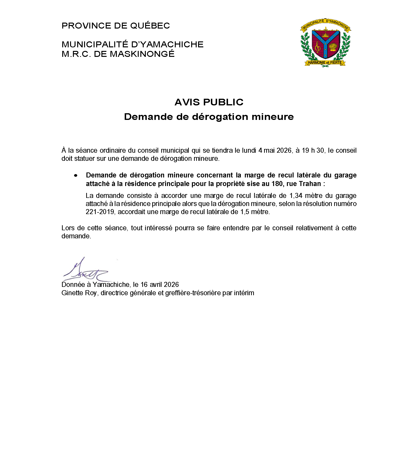 Accédez aux affaires municipales de Yamachiche.