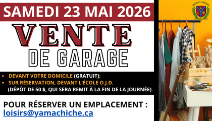 Afin de participer à la vente de garage qui se tiendra le samedi 23 mai 2026, vous devez remplirobligatoirement le formulaire d’inscription. La réservation ne peut pas se transférer à