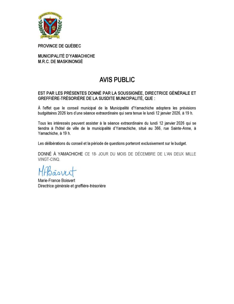 Vous pouvez vous inscrire pour recevoir des alertes et des notifications de la municipalité en vous rendant sur notre site web et en suivant les instructions pour vous abonner à notre service d’alertes.