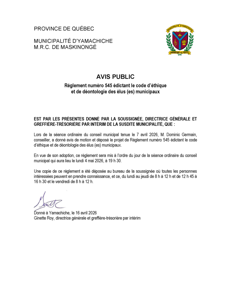 Vous pouvez vous inscrire pour recevoir des alertes et des notifications de la municipalité en vous rendant sur notre site web et en suivant les instructions pour vous abonner à notre service d’alertes.