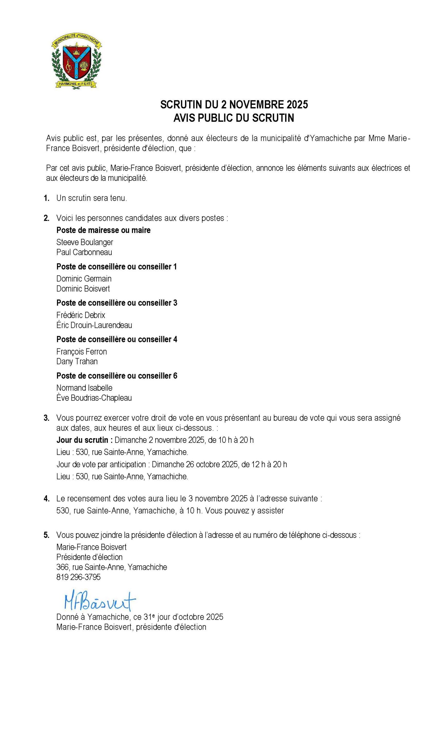 Vous pouvez vous inscrire pour recevoir des alertes et des notifications de la municipalité en vous rendant sur notre site web et en suivant les instructions pour vous abonner à notre service d’alertes.