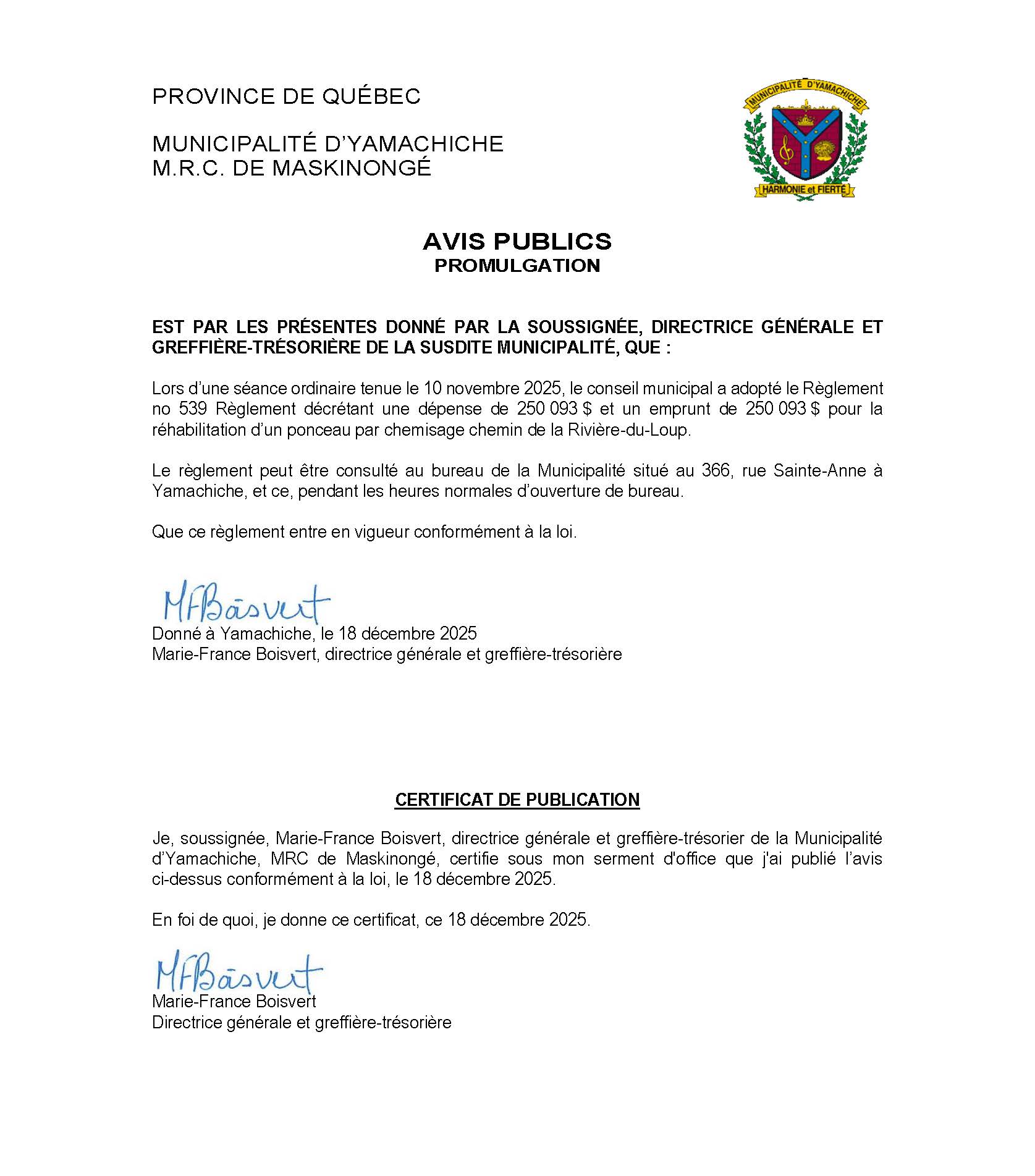Consultez les dernières annonces et décisions officielles de la Municipalité.